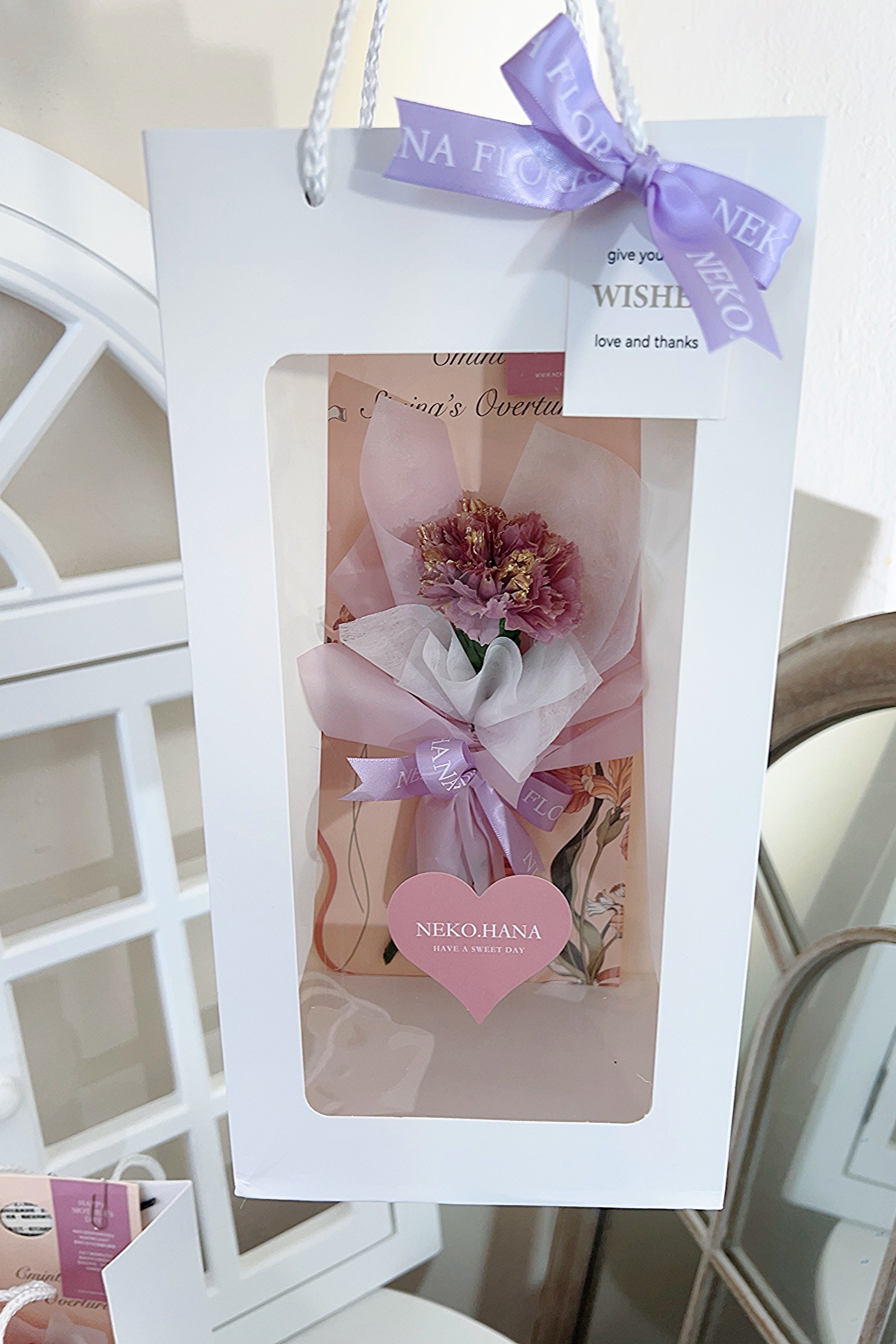 這款花禮是卡片,也是一幅立體的花束掛畫