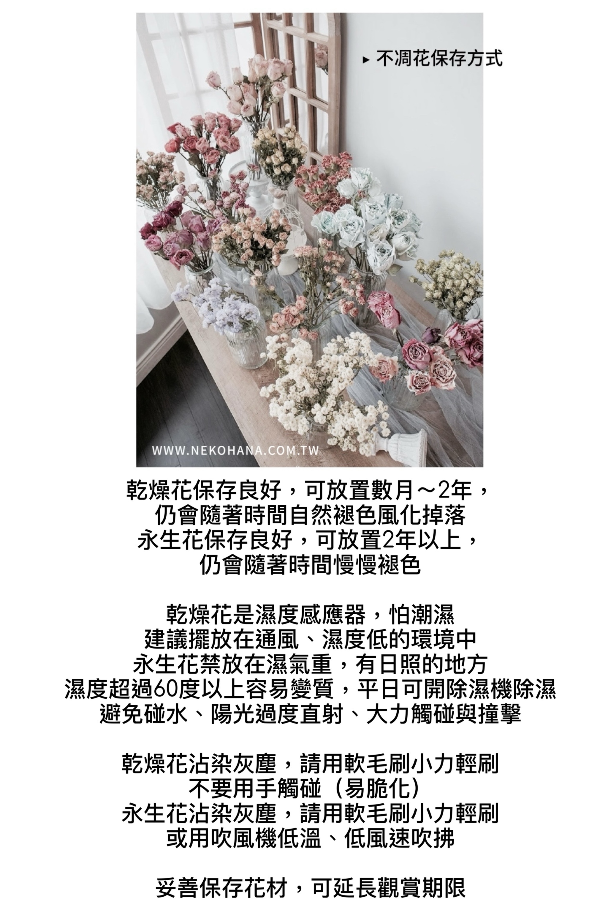 花材:日本進口厄瓜多永生玫瑰、銀蓮花、永生繡球